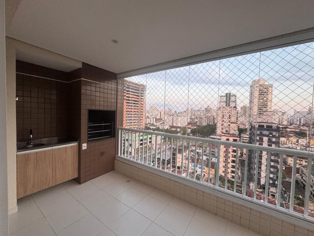 Apartamento para venda ou locação, com 3 quartos, sendo 1 suíte, Prédio com lazer completo, Santos-SP. O imóvel é amplo, arejado com muita luz natural, com  área de aproximadamente de 111 metros quadrados. A cozinha é planejada com armários, e uma bancada para quem gosta de cozinhar tem conceito aberto, integrada com a sala de jantar e estar. Além disso, há uma área de varanda com vista livre e área de churrasqueira proporciona lazer e integração. Já a sala de estar tem um lavabo para atender a área social. Corredor com um banheiro social e três quartos sendo 1 suítes com armários planejados e aparelho de ar condicionado. O apartamento tem pisos de porcelanato , revestimentos, louças e pias de qualidade, janelas de alumínio, móveis planejados, projeto de iluminação. Ótimo oportunidade para morar.